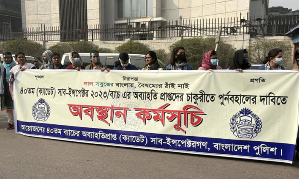 অব্যাহতিপ্রাপ্ত শিক্ষানবিশ এসআইদের সচিবালয়ের সামনে অবস্থান