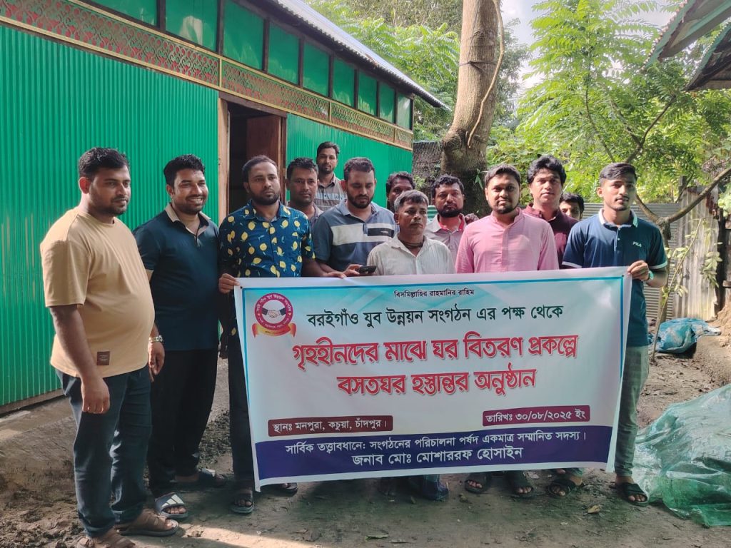 অসহায় দুলাল চন্দ্রকে গৃহ নির্মাণ করে দিলেন বরইগাঁও যুব উন্নয়ন সংগঠন