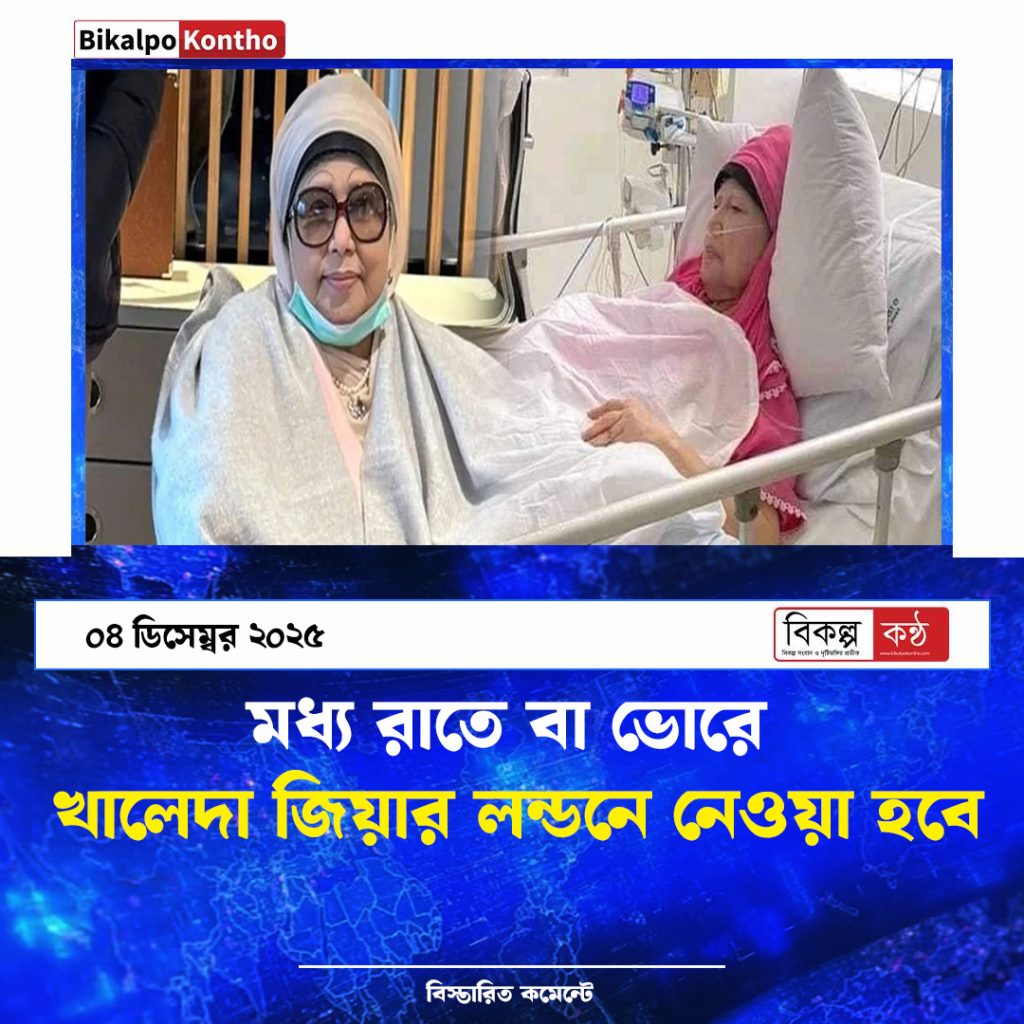 আজ রাত বা কাল সকালেই খালেদা জিয়া লন্ডনে নেওয়া হবে এয়ার অ্যাম্বুলেন্সে