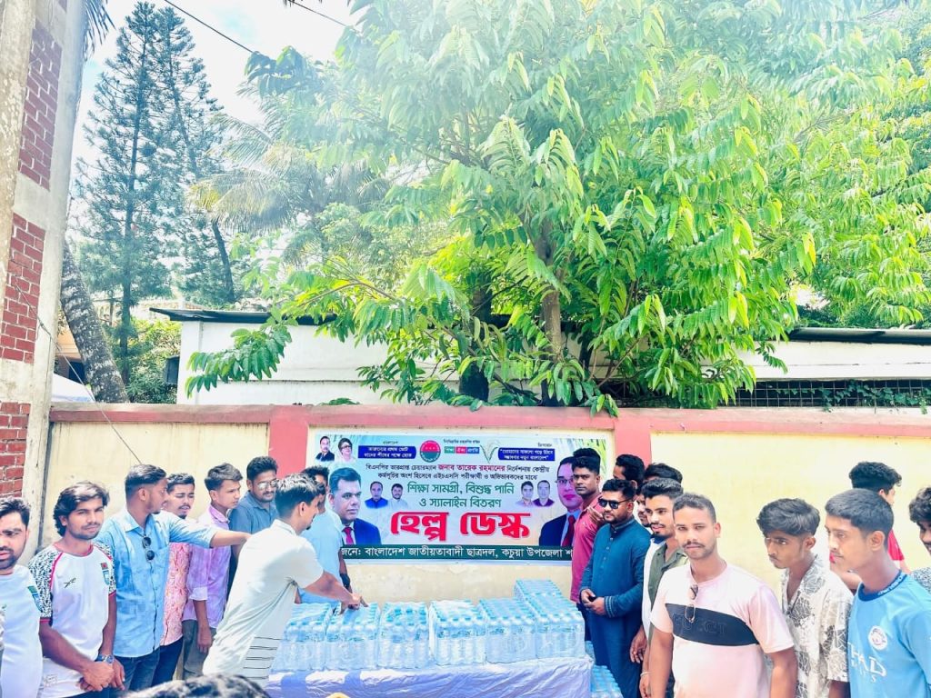 কচুয়া (চাঁদপুর): আসন্ন এইচএসসি পরীক্ষার্থীদের মনোবল বৃদ্ধির লক্ষ্যে কচুয়া উপজেলা ছাত্রদলের উদ্যোগে শিক্ষা সামগ্রী ও বিশুদ্ধ পানি বিতরণ করা হয়েছে।