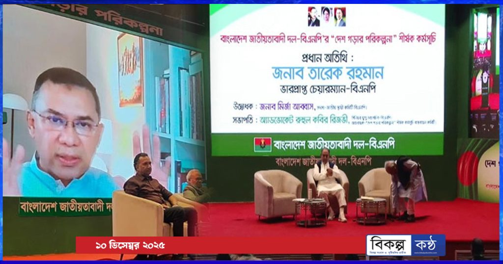 মহান বিজয়ের মাস ডিসেম্বরের ৭ তারিখ থেকে বিএনপি ঘোষিত সাত দিনব্যাপী কর্মসূচি ‘দেশ গড়ার পরিকল্পনা’ শুরু হয়েছে। এই ধারাবাহিক কর্মসূচির চতুর্থ দিনের আলোচনা অনুষ্ঠিত হয় বুধবার (১০ ডিসেম্বর) রাজধানীর ফার্মগেটের খামারবাড়ি কৃষিবিদ ইনস্টিটিউট মিলনায়তনে। সকাল থেকেই রাজনৈতিক নেতৃবৃন্দ, গবেষক, শিক্ষাবিদ এবং সাধারণ মানুষের উপস্থিতিতে মিলনায়তন জমে ওঠে।