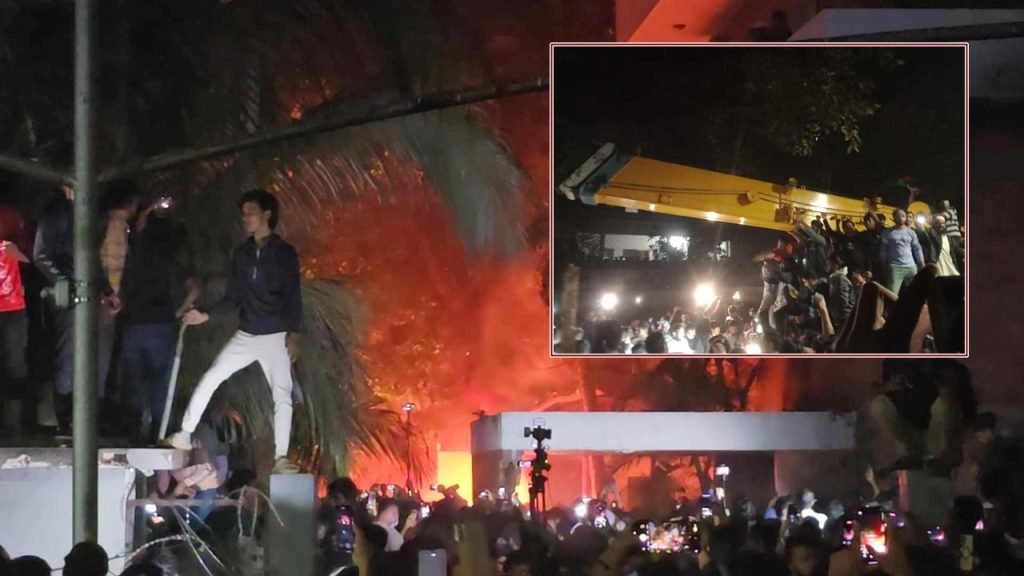 সরেজমিনে আরও দেখা যায়, ধানমন্ডি-৩২ নম্বরের শেখ মুজিবুর রহমানের বাড়ির সামনে কয়েক হাজার ছাত্রজনতা অবস্থান করছেন। আর ভবনের ভেতরে আগুন জ্বলছে। এর মধ্যে দিয়েই বুলডোজার দিয়ে ভবন ভাঙার কাজ শুরু করেছে ছাত্রজনতা।