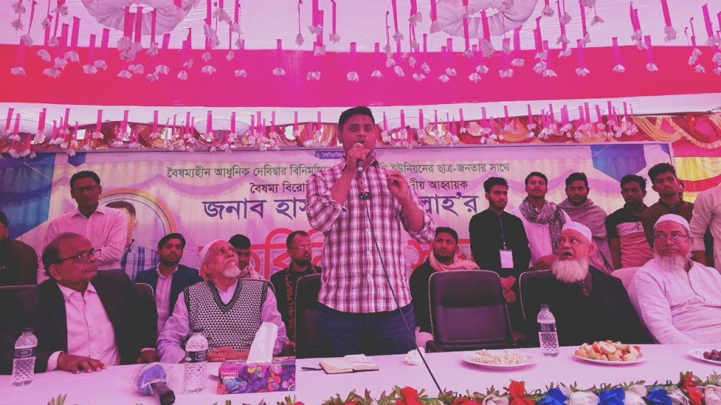 হাসনাত বলেন, “ফ্যাসিবাদ পতনের পর নেতারা ভারতে ও দুবাই পালিয়ে গিয়ে ফুর্তি করছে, আরাম-আয়েশ করছে। পালানোর সময় তাদের কোনো কর্মীকে সঙ্গে নেয়নি। এখন সেই কর্মীরাই বাড়ি থাকতে পারছে না। বিএনপি-জামায়াত ও ফ্যাসিবাদবিরোধী রাজনৈতিক দলের নেতা-কর্মীদের নামে দেশে হাজার হাজার মামলা হয়েছে, তাদের ধরে নিয়ে নির্যাতন করা হয়েছে। ইমাম ও আলেম-ওলামাদের ওপর নির্যাতন করা হয়েছে। ছিল ঢাকায়, ঘুম থেকে ওঠে দেখে চৌদ্দগ্রামে গাড়ি পোড়ানোর মামলার আসামি, এসব কিছু ফ্যাসিবাদী আমলে দেখেছি।”