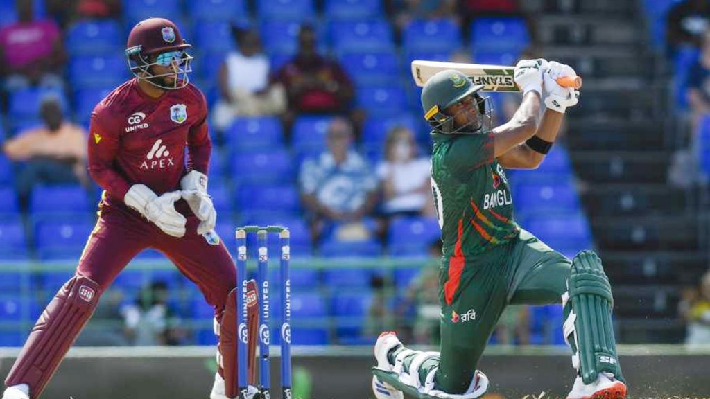 এর আগে সিরিজ বাঁচানোর লড়াইয়ে বাংলাদেশ টস হেরে আজ আগে ব্যাটিংয়ে নামে। তানজিদ তামিম আগ্রাসী ব্যাটিংয়ে উড়ন্ত সূচনা দিতে চাইলেও, অপরপ্রান্তে সৌম্য সরকার আউট হয়ে যান মাত্র ২ রান করে। আগের ম্যাচে ভালো শুরুর পরও আউট হন ১৯ রানে, আজ তার ধারেকাছেও যেতে পারেননি এই ওপেনার। চতুর্থ ওভারে জেইডেন সিলসের প্রথম বলে তিনি মিড অনে ক্যাচ দিয়েছেন। তিনে নেমে যথারীতি ব্যর্থ লিটন দাসও। অনেকটা টেস্ট মেজাজে খেলছিলেন, একপর্যায়ে ধৈর্য হারিয়ে জোরালো শট নেন তিনি। সেটি ঠিকঠাক লাগেনি, ব্যাকওয়ার্ড পয়েন্টে তালুবন্দী হন ৪ রানে (১৮ বল)।