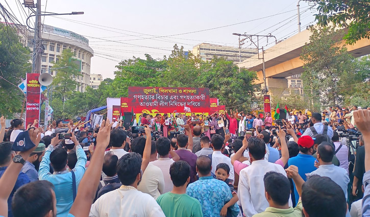 শুক্রবার (২৫ এপ্রিল) বিকেল সোয়া ৩টায় জাতীয় জাদুঘরের সামনে আয়োজিত এই সমাবেশে বক্তারা বলেন, আওয়ামী লীগকে নির্বাহী আদেশে নিষিদ্ধ ঘোষণা করে পরবর্তী সময়ে বিচারিক প্রক্রিয়ার মাধ্যমে চূড়ান্ত নিষিদ্ধ করতে হবে।