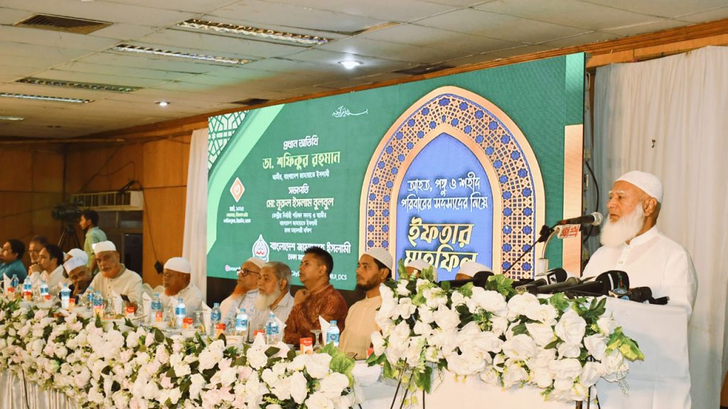 সোমবার (৩ মার্চ) আন্দোলনে আহত, পঙ্গু, শহীদ পরিবারের সদস্য ও বিশিষ্ট ব্যক্তিদের সম্মানে ঢাকা মহানগর দক্ষিণ জামায়াতের আয়োজনে অনুষ্ঠিত ইফতার মাহফিলে প্রধান অতিথির বক্তব্যে তিনি এসব কথা বলেন।